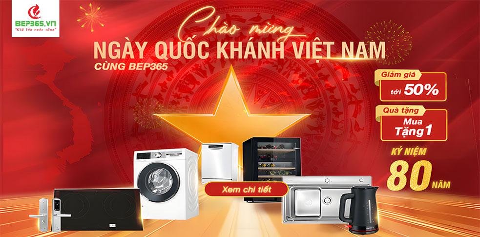 Từ 15/8/2025 – 5/9/2025, toàn bộ sản phẩm thiết bị bếp, điện máy và gia
